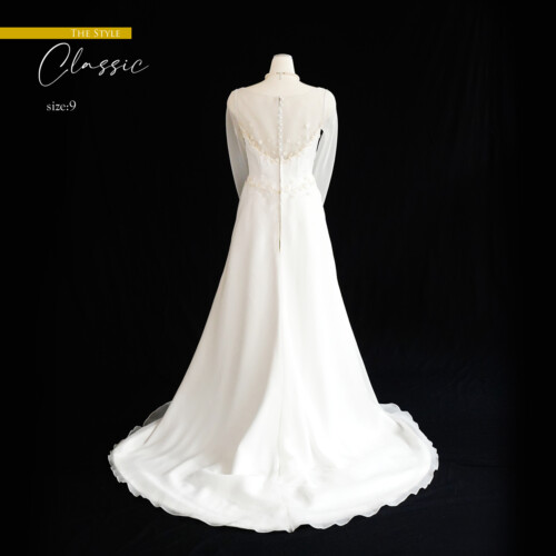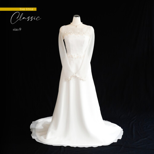 肌の露出が抑えられたエンパイアラインドレスはナチュラルな雰囲気のため海外ウエディングやガーデニングウエディングにぴったりです。