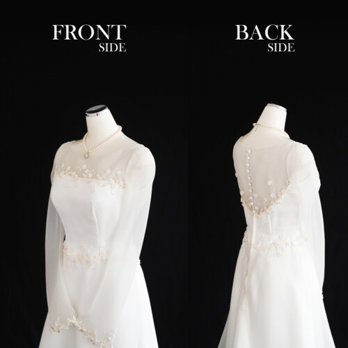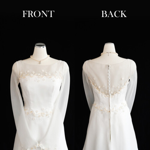 デコルテから袖までオーガンジー素材の透け感が大人の上品さを演出。