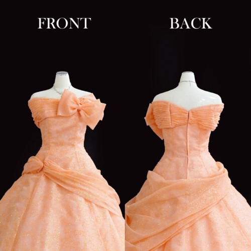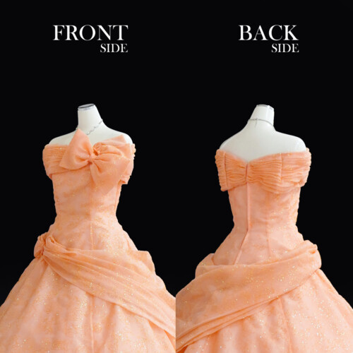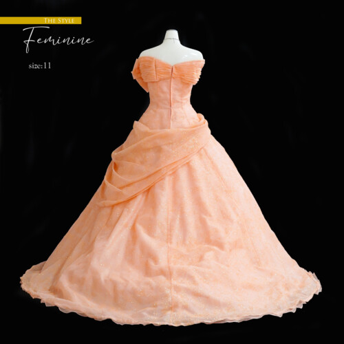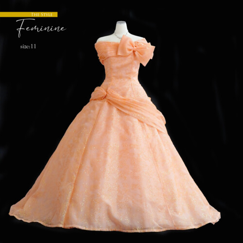 動きに合わせてキラキラと眩しい光を放ち華やかな印象を感じるグリッタードレス。まるで魔法にかけられたようで、より美しくより輝かせてくれる効果もあり花嫁さんに人気の一着。