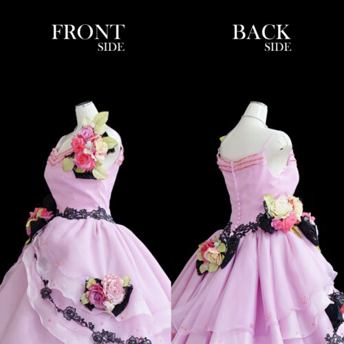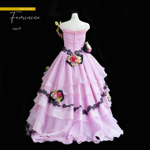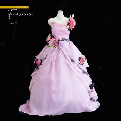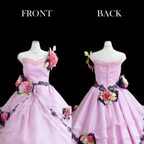 ピンク色だけでなく黒レースをフリルに入れ大きめのコサージュを引き立てて甘さをおさえて大人の雰囲気を出してくれます。コサージュの取り外し可能なので、自由に付け替えが楽しめます。