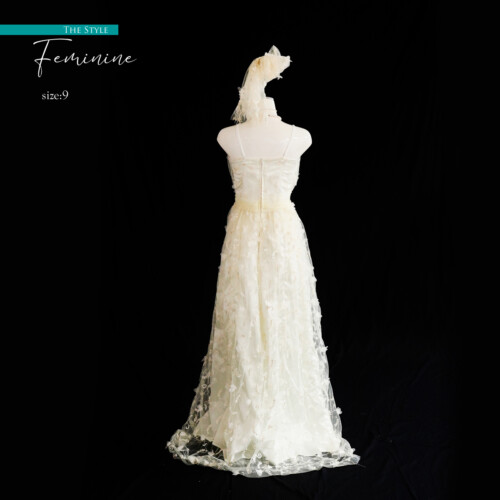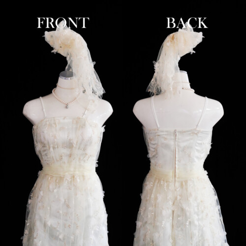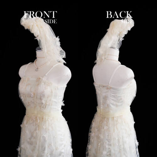 立体的な花のモチーフにしたオーガンジー素材が施しされたドレス。