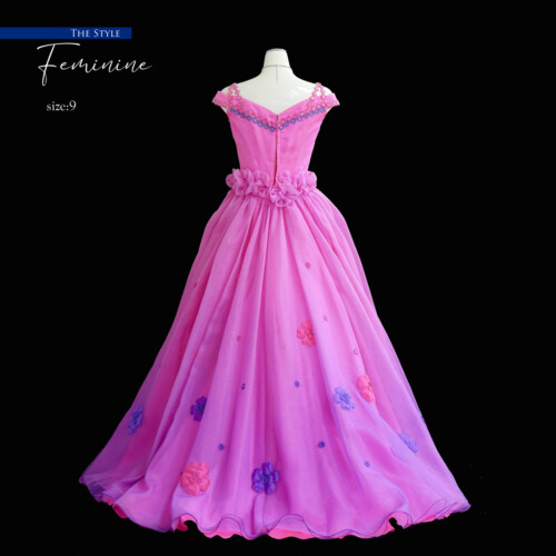 柔らかなピンクカラーから深みのあるバンジーカラーへといろが変わるグラデーションが美しい一着。幻想的な色合いが優雅でロマンチックな雰囲気を与えます。
